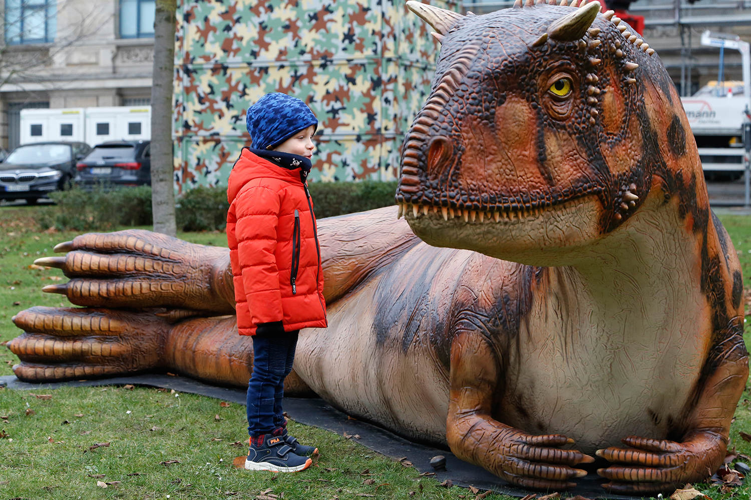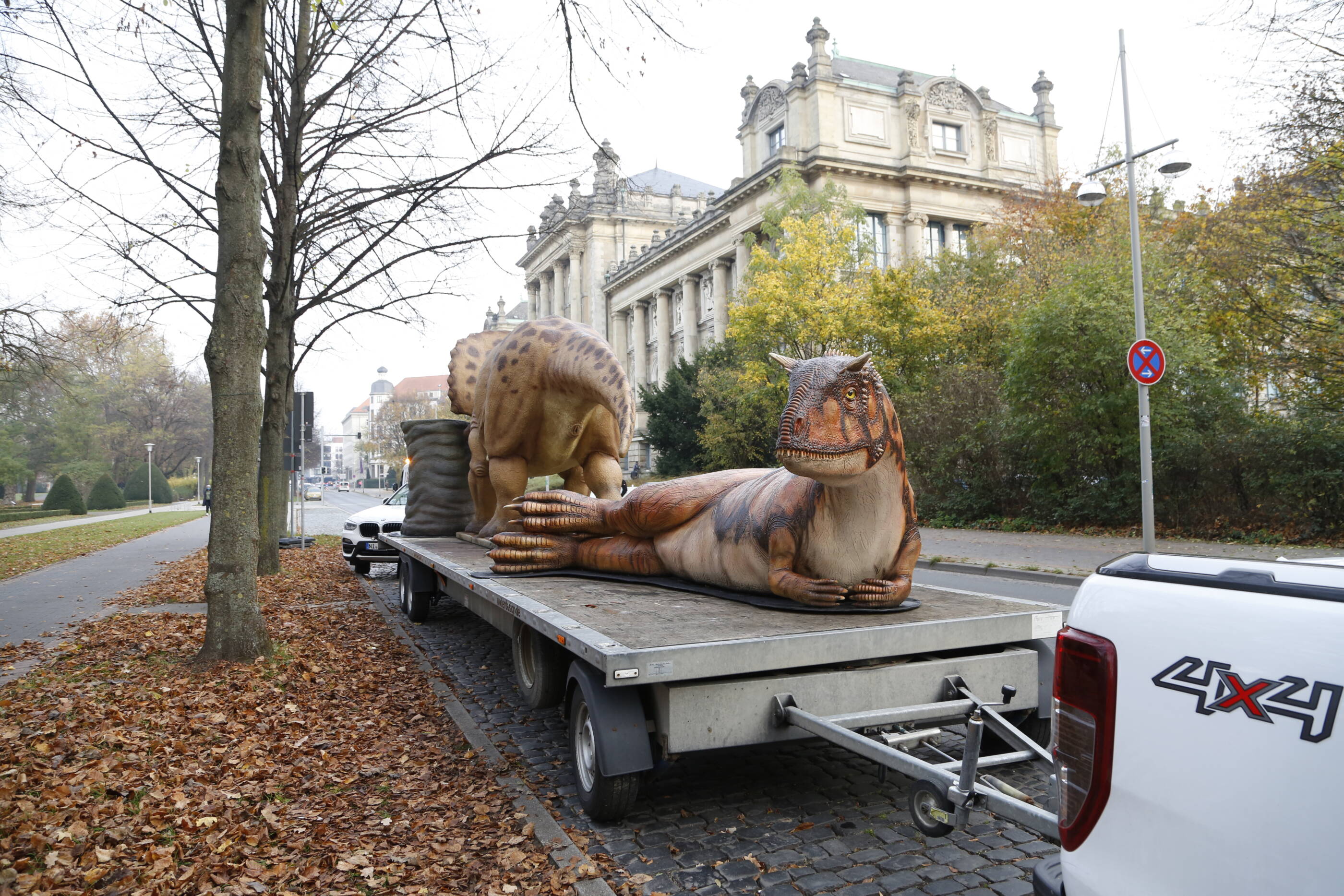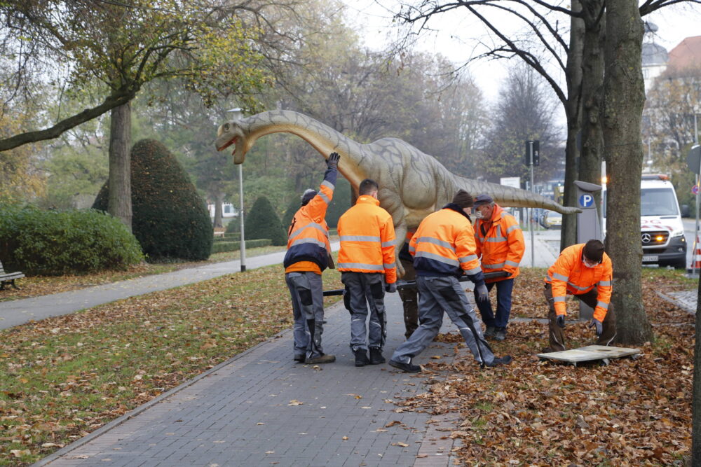 Anlässlich der kommenden Sonderausstellung »KinoSaurier. Zwischen Fantasie und Forschung« wurden auf dem Außengelände des Landesmuseums Hannover drei lebensgroße Dinosauriermodelle aufgebaut. Darunter befindet sich auch das Modell eines 45 Meter langen Seismosaurier aus der Gruppe der Sauropoden.