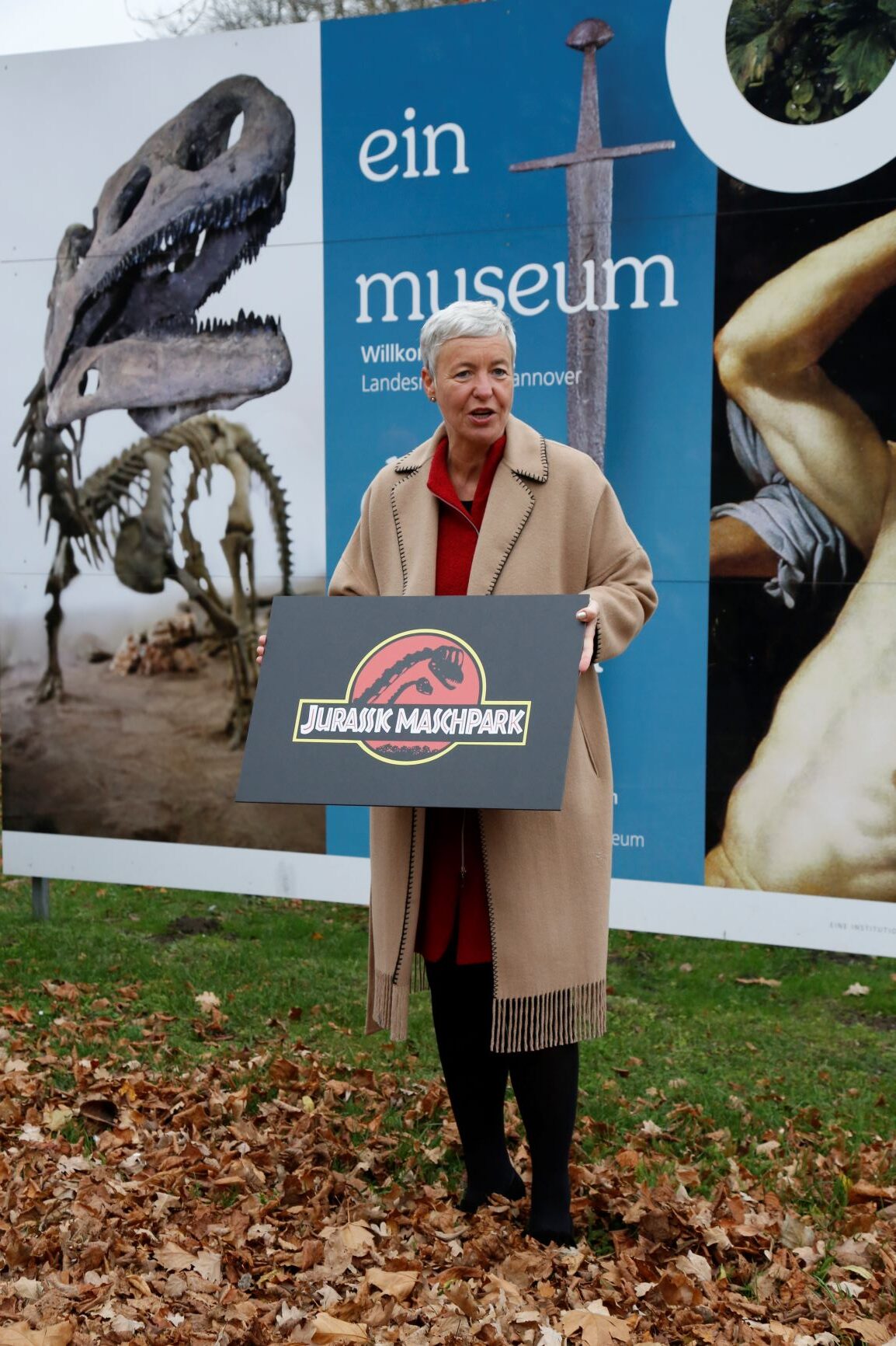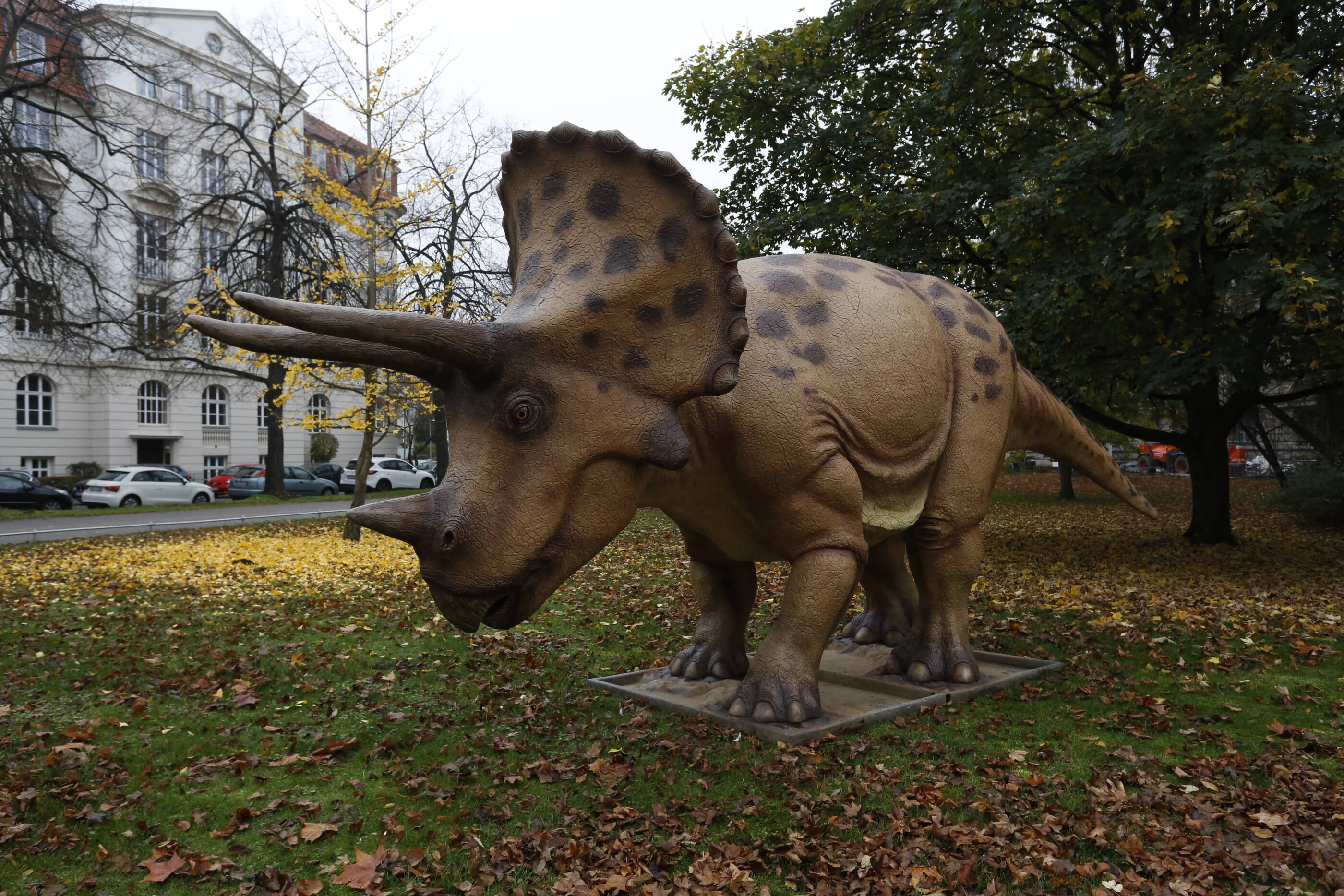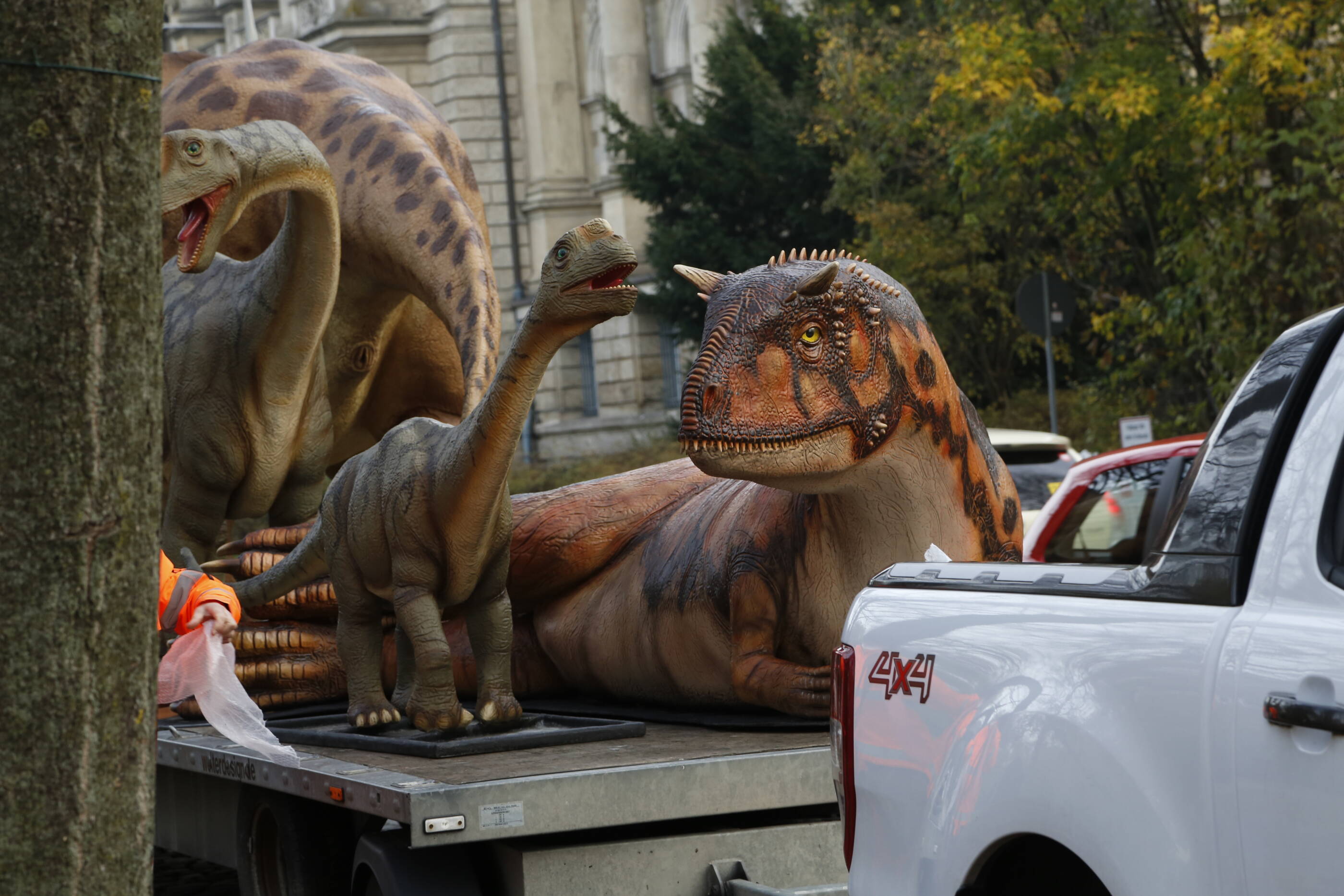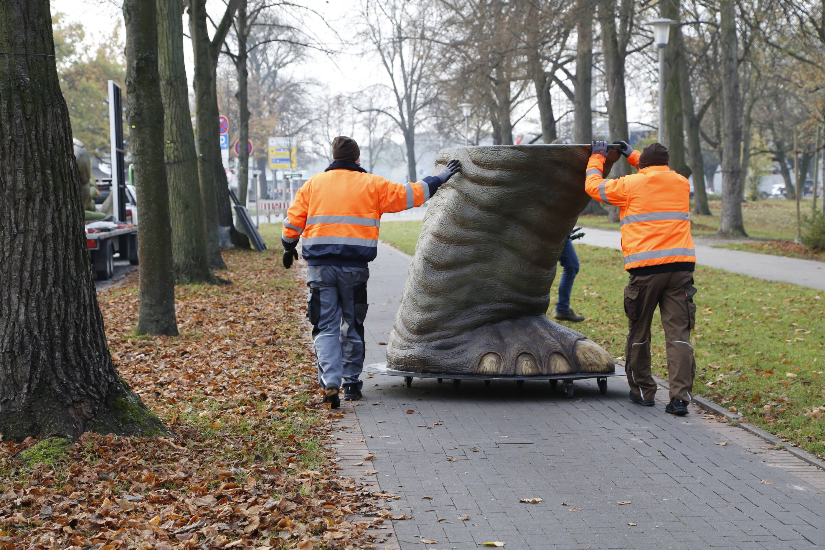 Anlässlich der kommenden Sonderausstellung »KinoSaurier. Zwischen Fantasie und Forschung« wurden auf dem Außengelände des Landesmuseums Hannover drei lebensgroße Dinosauriermodelle aufgebaut. Darunter befindet sich auch das Modell eines 45 Meter langen Seismosaurier aus der Gruppe der Sauropoden.
